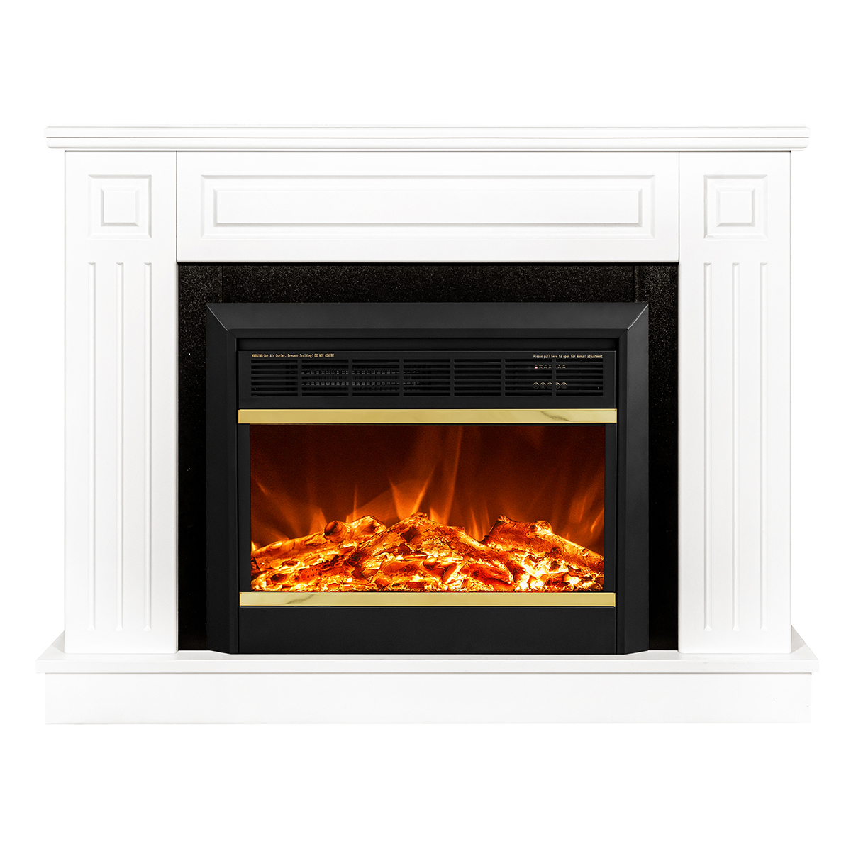 Electric fireplace "Mars", made in a standard format with gold inserts. The device is capable of operating in 2 modes: in decorative mode and heating mode. In decorative mode, the device creates a cozy atmosphere with a high-quality simulated flame, the brightness of which can be changed using the remote control that comes with the kit. In heating mode, the electric fireplace is able to heat a room with an area of 15m2. Overheating protection is responsible for the safety of the fireplace.